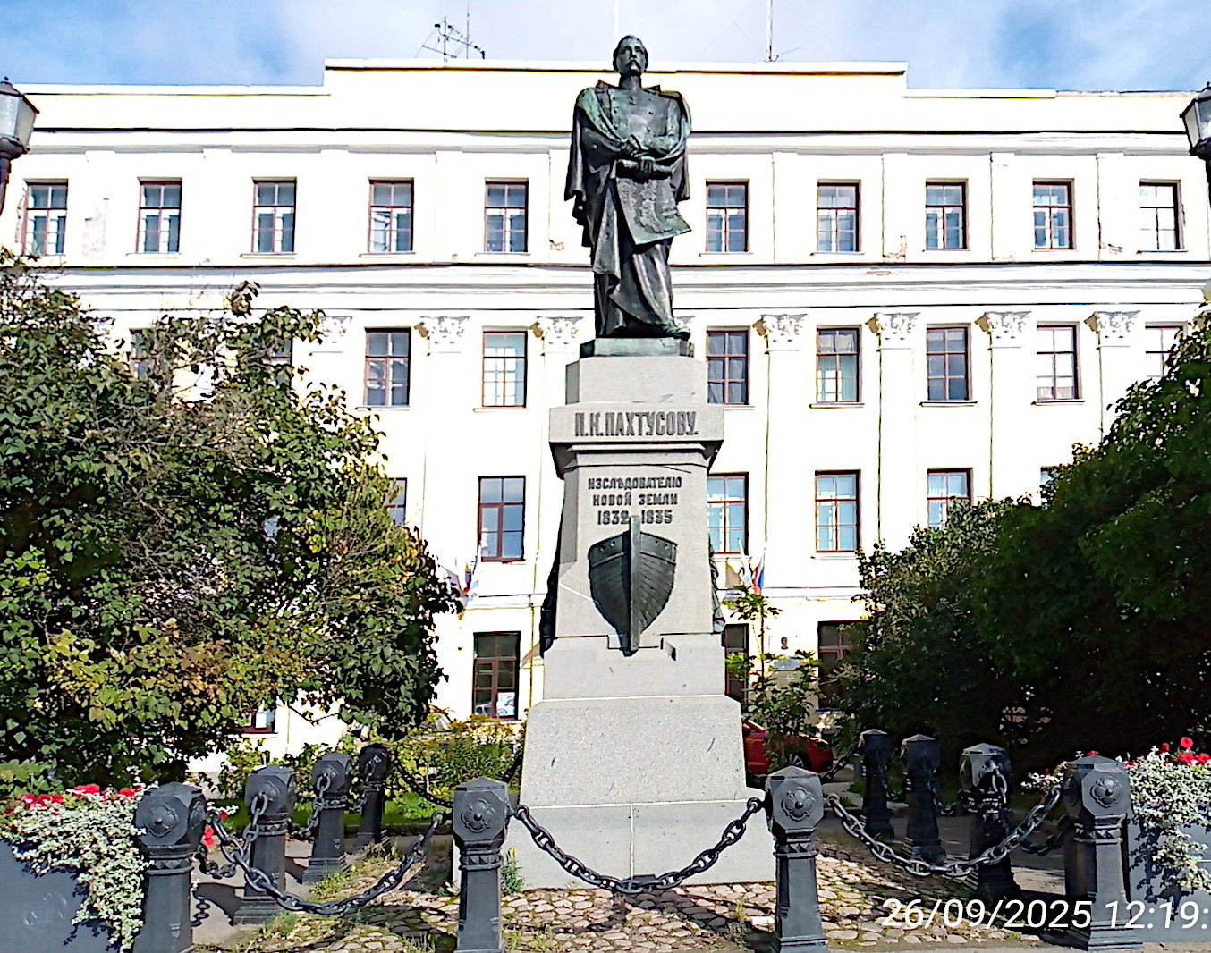 На постаменте памятника Пахтусову находится одна из двух реперных точек положения Кронштадтского футштока, нулевая отметка которого является точкой отсчета высот и глубин в нашей стране. Это горизонтальная черта буквы «П» в слове «Польза».