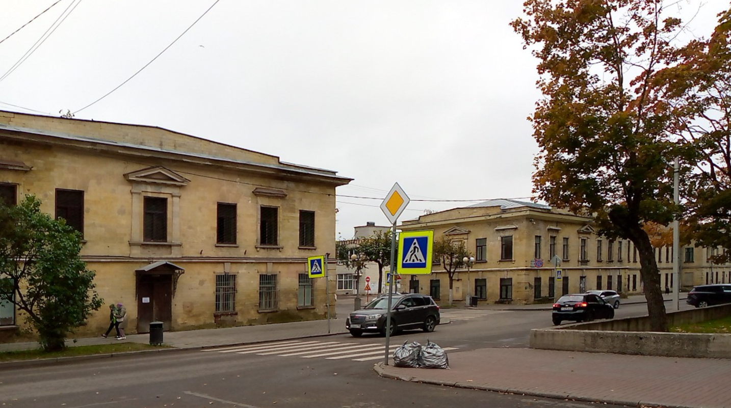 Пересекаем его и оказываемся в Госпитальном городке. Сейчас здесь бюст Ленина. Госпиталь организовал Павел I в 1794 г, архитектор Бренна. Первый этаж - каменный, второй - деревянный, внутри была церковь Николая Чудотворца.