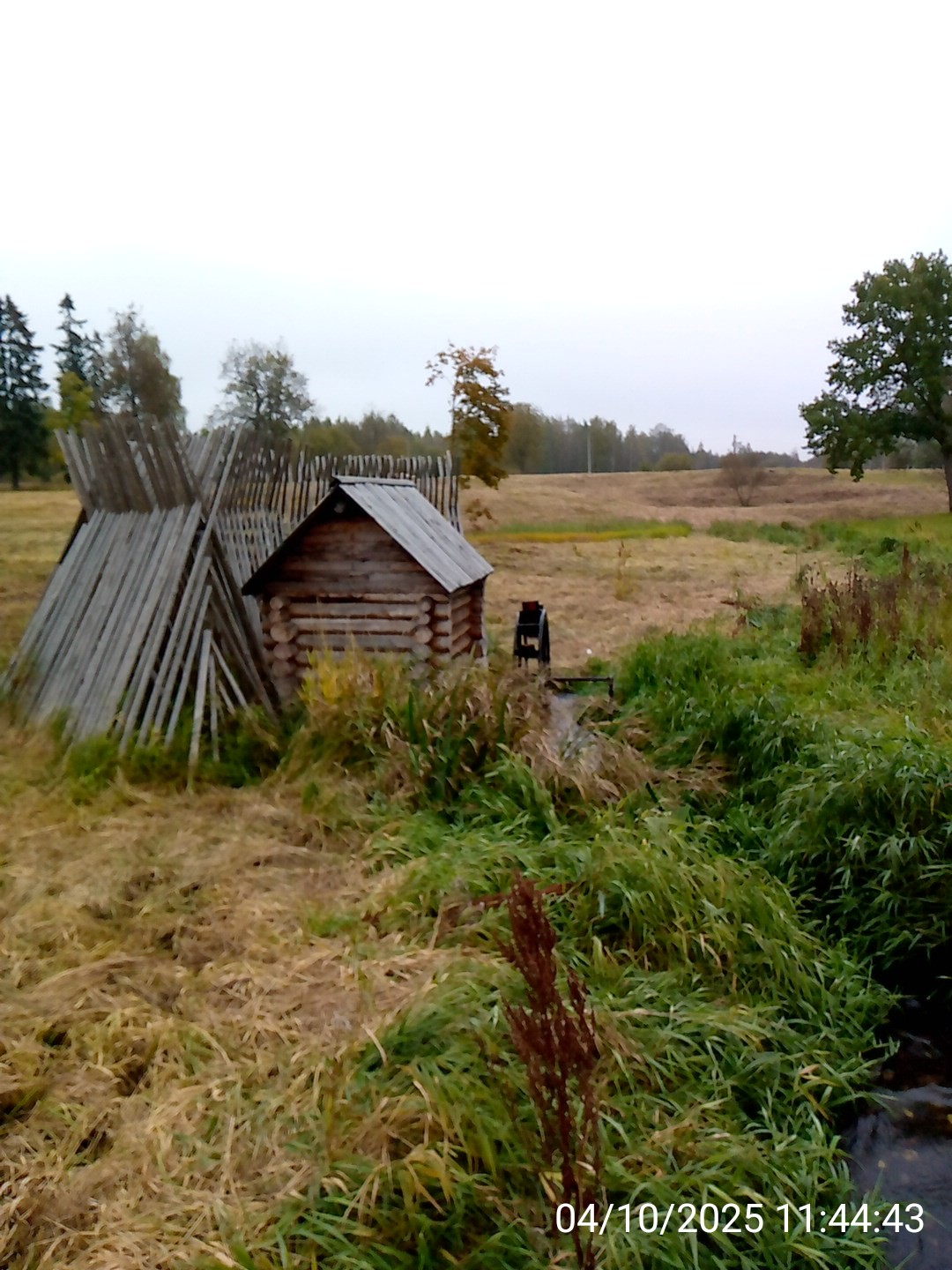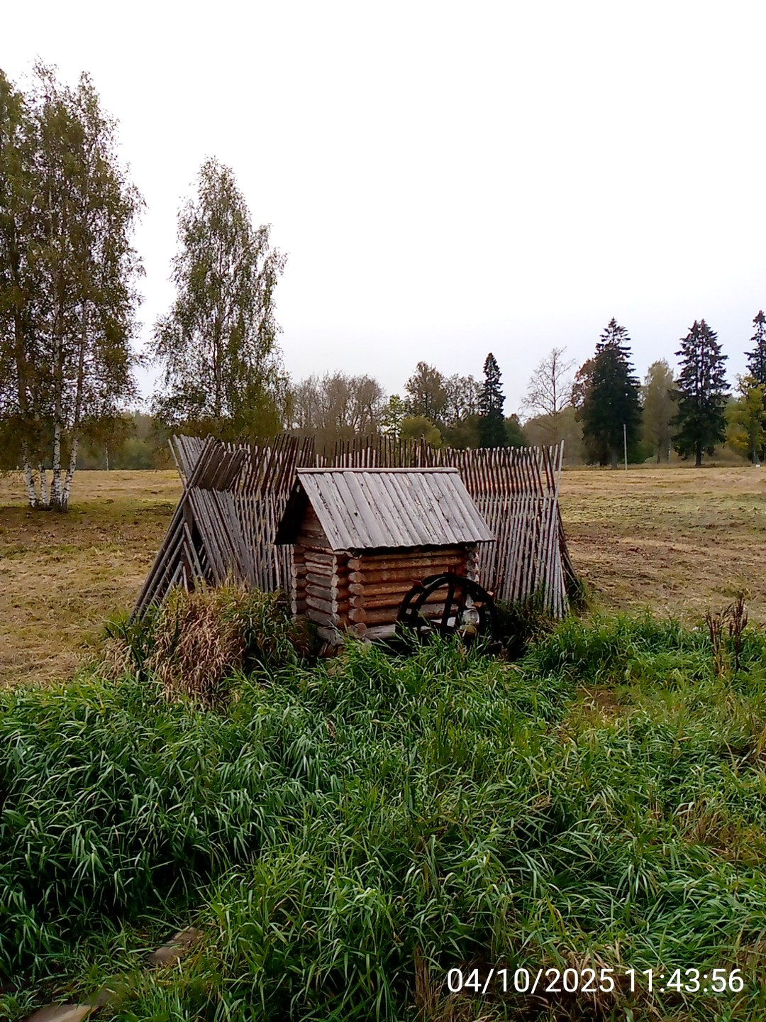 Идем по Бывшей (Динабургской, Екатеринверденской ?) дороге, сейчас Красноармейский проспект вдоль забора парка. Свернули вдоль забора с Красноармейского проспекта. Пересекаем речку Колпанку(? Пильную ?). Она очень узенькая в этом месте, но течение очень сильное. Недалеко от мостика - макет мельницы, стоявшей на этой речке и ограды, которая раньше была у Зверинца.