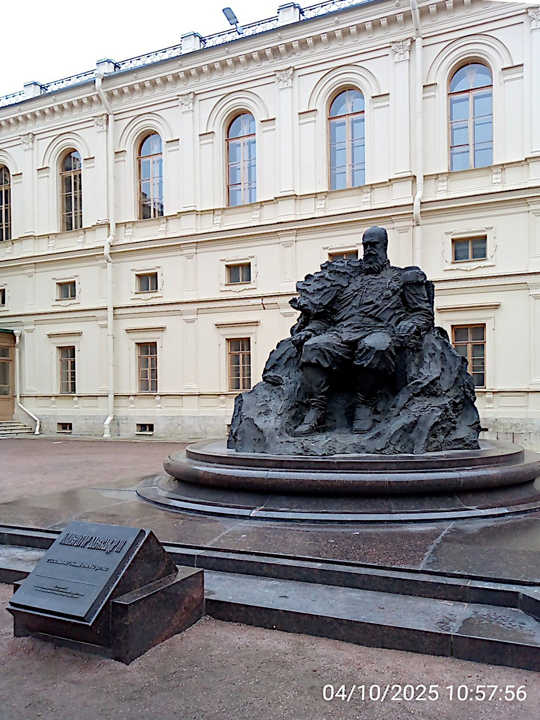 Возвращаемся к Арсенальному каре, заходим во двор к памятнику Александру III. Александр III с семьей жили в Арсенальном каре на втором этаже.