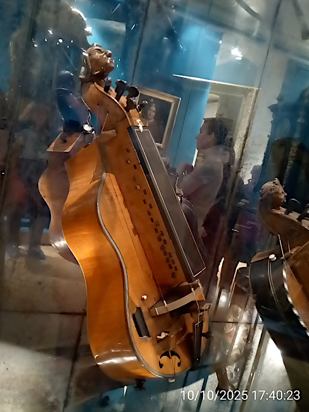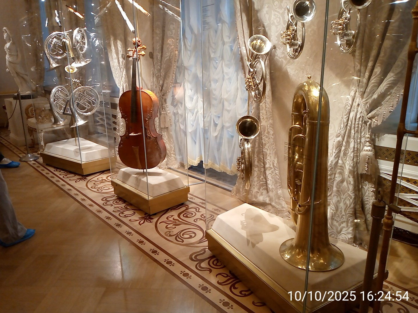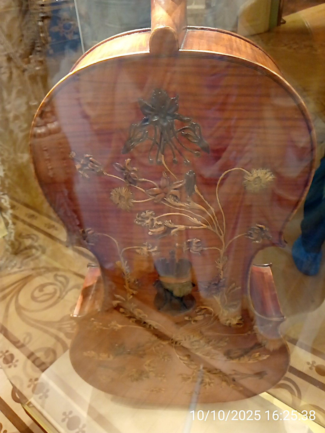 Музыкальные инструменты императорские. Виолончель, на которой играл Александр III. На обратной стороне корона и герб. |