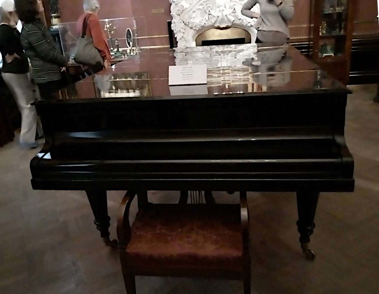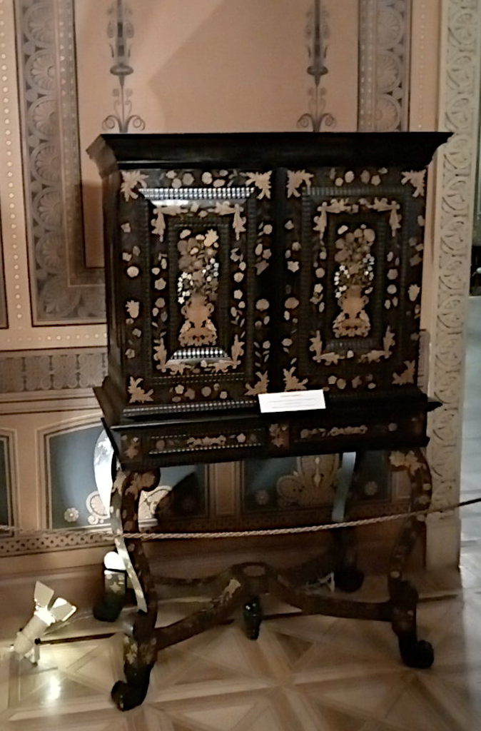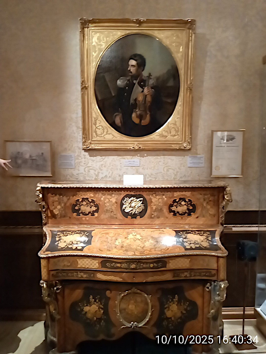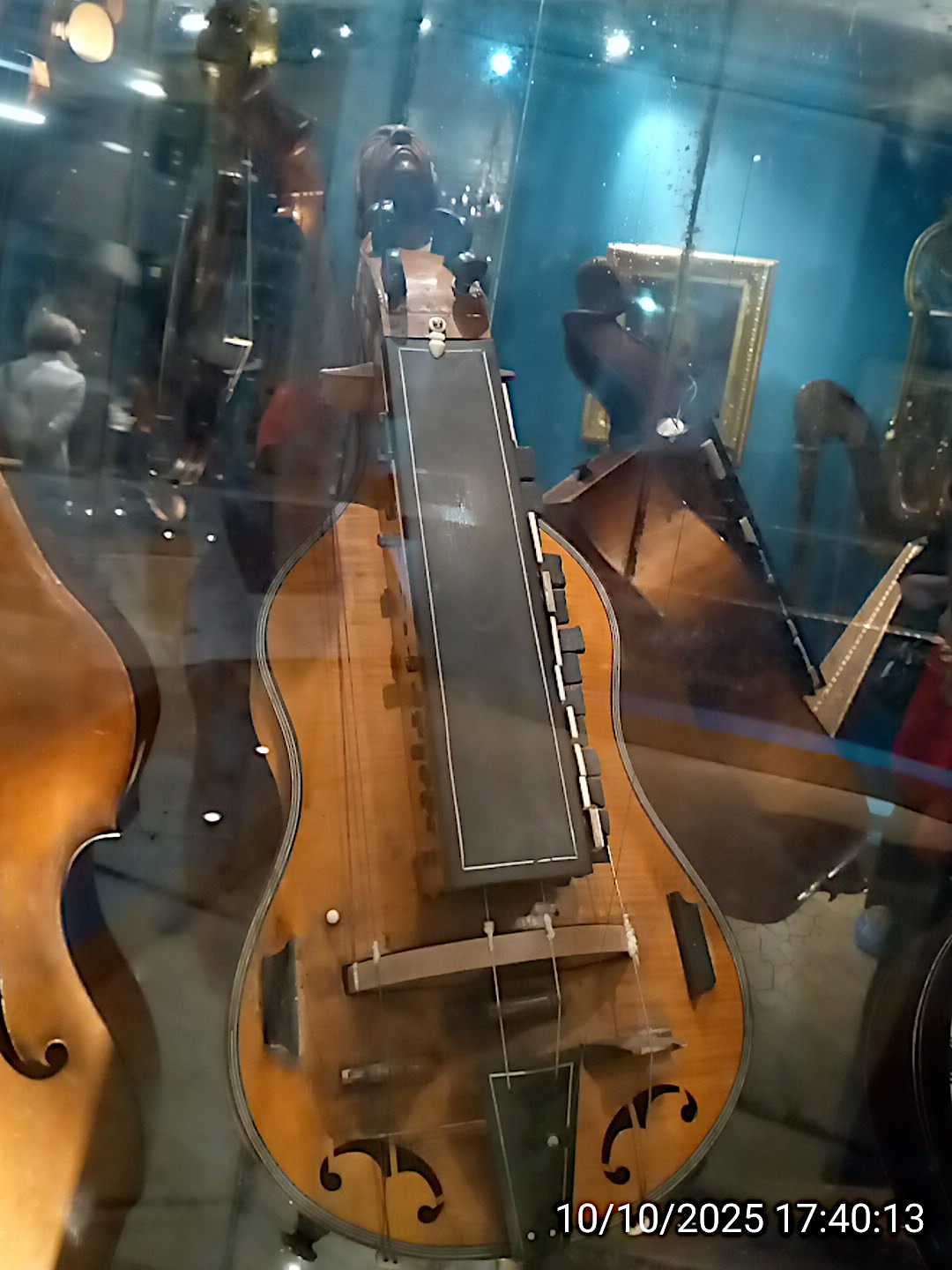 Музыкальные инструменты императорские. Виолончель, на которой играл Александр III. На обратной стороне корона и герб. |