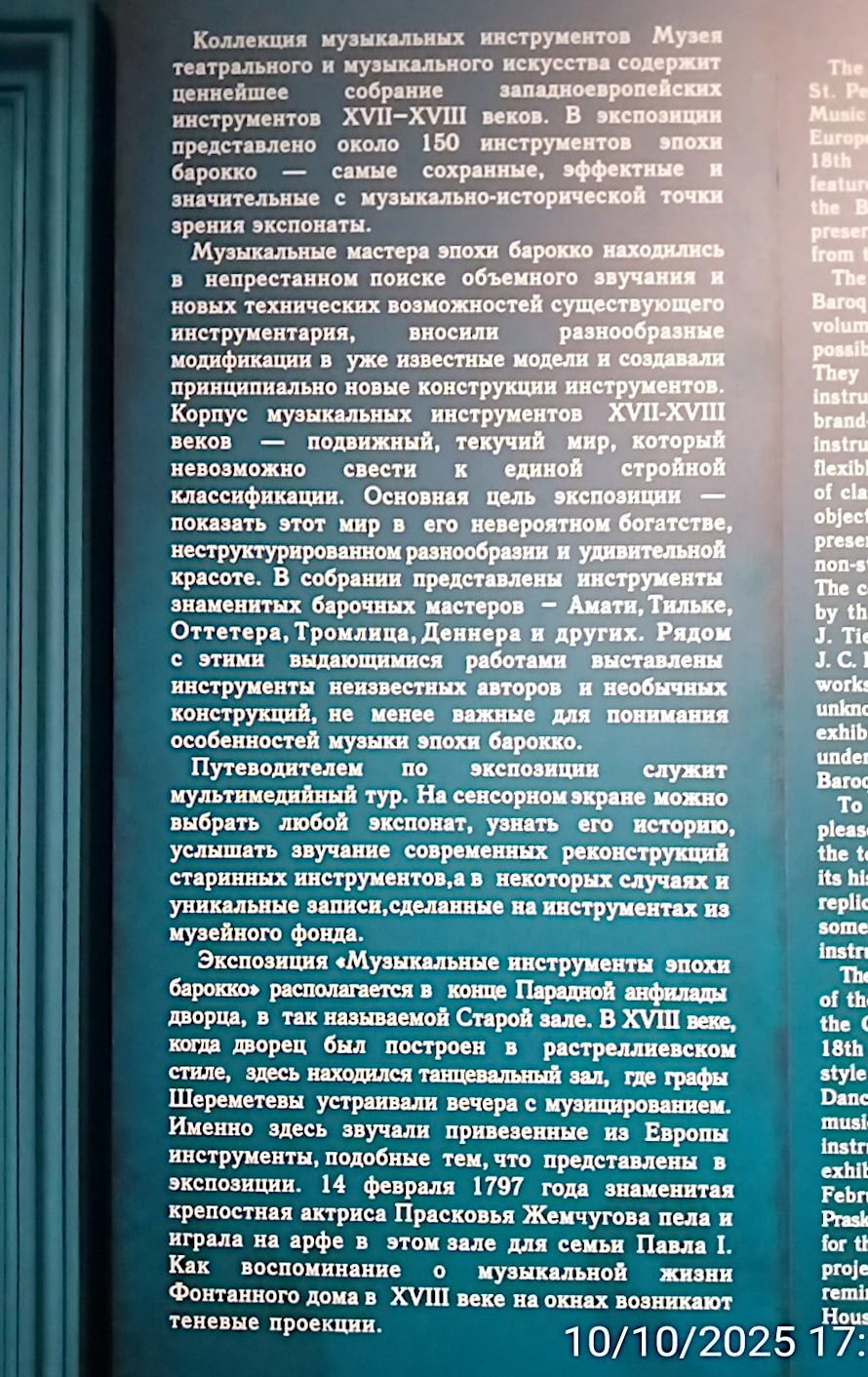 Г-образный зал - зал барочных инструментов